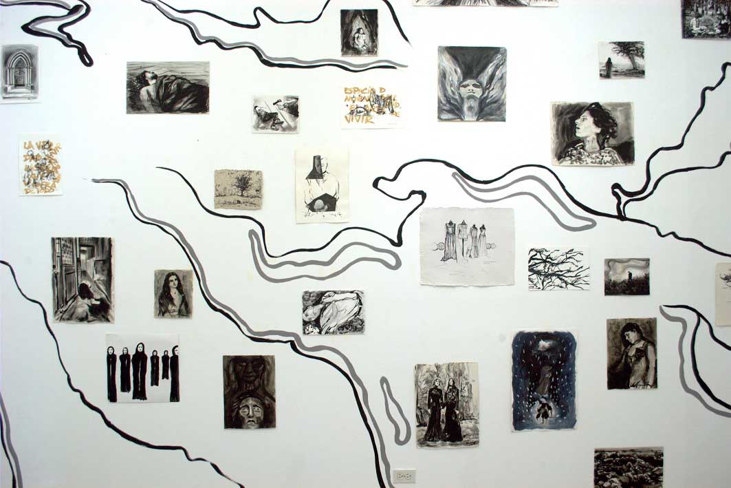 Pensemos la muestra –desde su teatralidad y potencial escenográfico– como un grupo de instantáneas aisladas que, en su comunión, van construyendo una visión particular de las circunstancias. Montes de Oca logra, en dibujos y bocetos a medio hacer, devolver al espectador fragmentos desintegrados de su propia historia –real o fabulada– para que cada quien los rehaga a su manera. Así lo personal se torna colectivo y cada mundo se crea según quien lo interprete. Constelaciones, sin pretender mucho, logra eso: redimensionar lo individual y que sea escrito nuevamente en otro universo de miradas y significados colectivos.