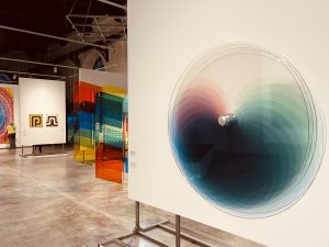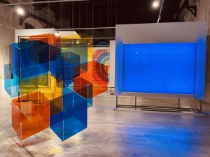 Entre las piezas destacan dos obras, ambas realizadas en 2013: la inconfundible “Esfera Azul Oscuro” de Julio Le Parc, la cual apela a la experiencia sensorial y al desplazamiento del espectador y “No todo es azar” de Soledad Sevilla, donde la vibración cromática genera tensiones espaciales. Otras espectaculares piezas son “Diario Diana” (2022), de Inmaculada Salinas, la cual está compuesta por 150 dibujos realizados con lápices de colores que exploran la repetición y la memoria; así como “Infinite”, de Cachito Vallés, una obra que desestabiliza la percepción al jugar con la luz, la profundidad y la noción de vacío, y que , en palabras de la artista: “se concibe como una oportunidad de enfrentar a la humanidad al abismo cósmico”.