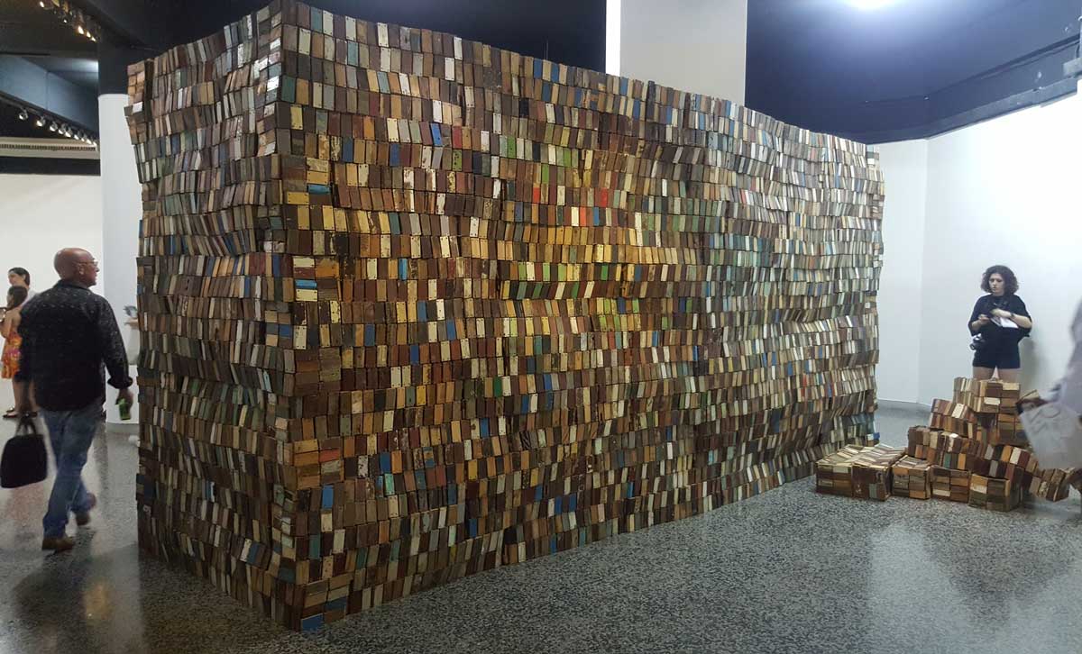 Las obras de Esterio Segura discursan sobre la jerarquía y los disímiles escollos en la obtención del conocimiento. Para ello se apoya en la figura del libro, tanto a nivel conceptual como formal, invitando a cuestionamientos en cada sujeto sobre la distribución misma de los saberes. Diago por su parte permanece fiel a su estética del reciclaje realizando esta suerte de muro infranqueable que rodea a la columna y provoca un fuerte impacto visual. Por último encontramos las dos piezas de Capote: la primera de ellas interactúa con el público que se siente inevitablemente atraído por su vaivén, la segunda más perturbadora pues vuelve el artista a recurrir al peso abrumador de la palabra y el simbolismo que entraña.