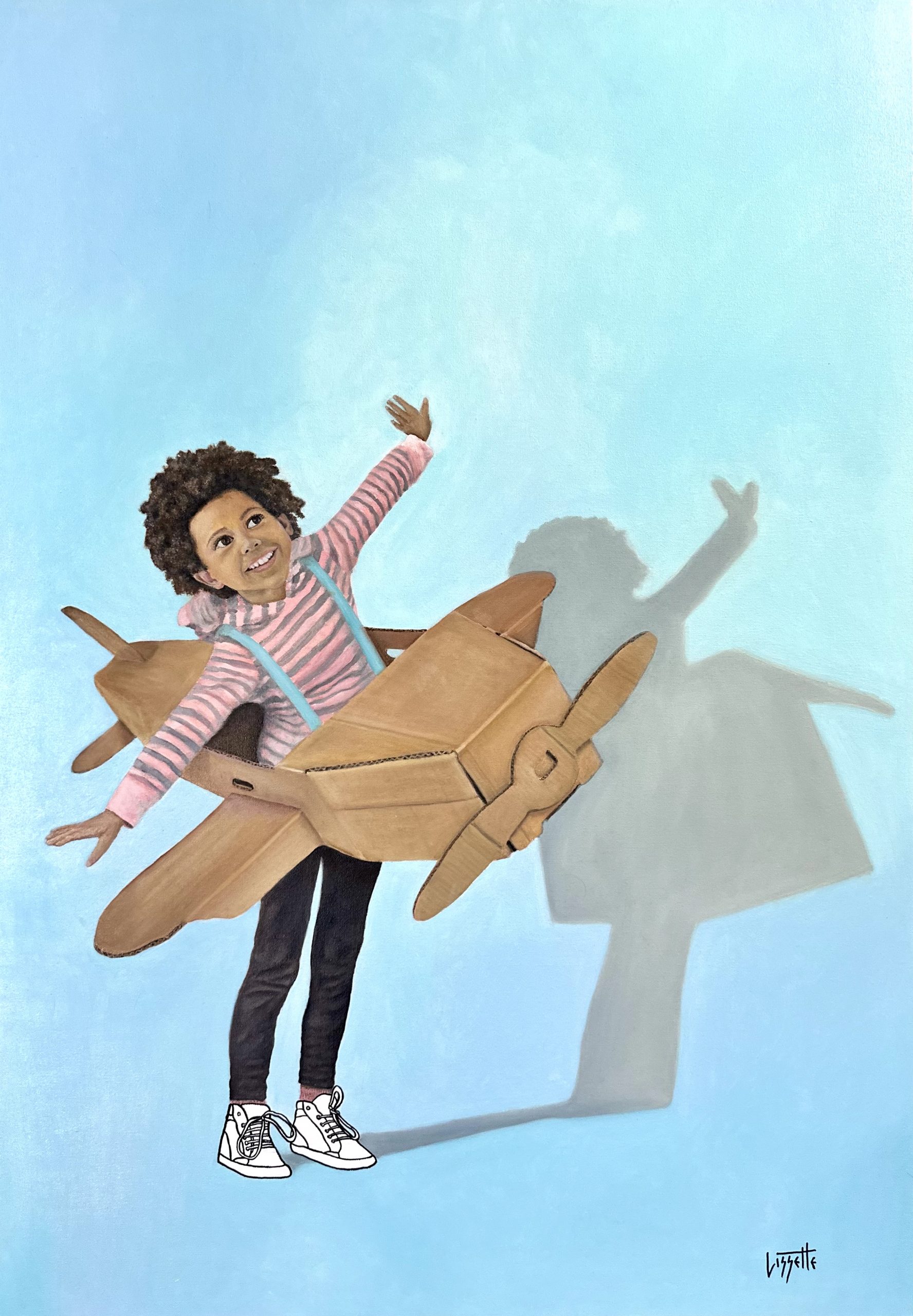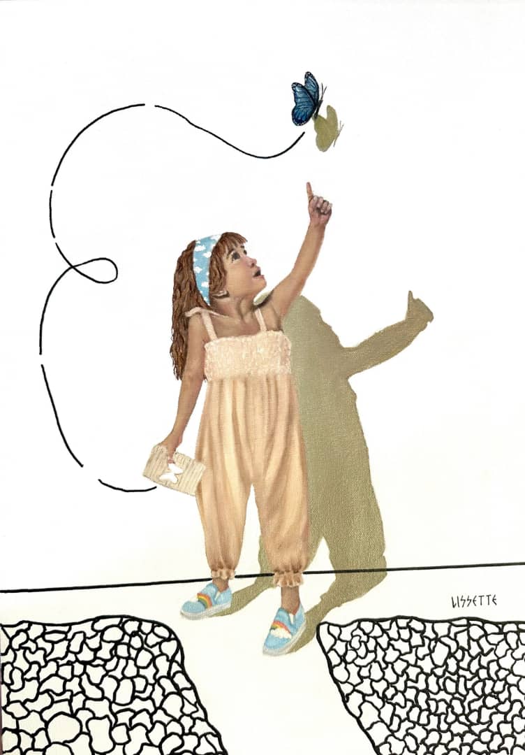 Trabajo principalmente la figura humana al óleo sobre lienzo y complemento con acrílicos que me permiten jugar con transparencias y matices emocionales. A lo largo de mi recorrido, he desarrollado mi producción por series que dialogan entre sí y se alimentan unas a otras. Niñerías fue el punto de partida: un homenaje a la infancia como territorio de inocencia, asombro y sanación. De ella nació Niñerías en Juego, donde esa mirada infantil se expande hacia un plano más social, buscando sembrar esperanza y posibilidad, incluso, en los contextos más difíciles. Actualmente desarrollo Tres Niños Sabios, una reinterpretación simbólica de los tradicionales “Tres Monos Sabios”, donde invito a ver, escuchar y hablar el bien como metáfora de la responsabilidad de nutrir lo positivo y lo bello en la vida cotidiana.