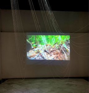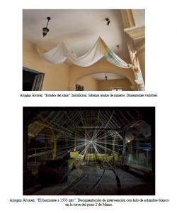 Ariagna Álvarez. “1 Km de im-pureza”. Video instalación, mil mts de estambre blanco contaminado en la acción realizada por la artista en un manantial minero.