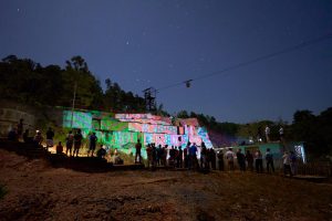 “Futuro”. Video mapping proyectado sobre las ruinas del concentrador. Nelson Ramírez y Frank Batista. Idea: Hortensia Peramo.