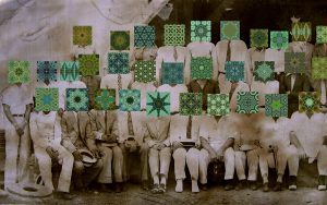 Adrián Lamela. “Legado”. Fotografías de estuches de medallas seccionados en 48 partes conteniendo la foto fragmentada de la abuela del artista en su sepelio. 48×60 cm.
