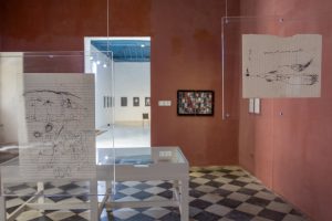 Adrián Lamela. “Trazos de ausencia”. Instalación. Dibujos infantiles recuperados, lápiz sobre papel, acrílico. Dimensiones variables.