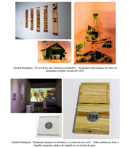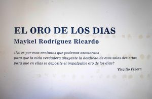 Finalmente, con El oro de los días Maykel Rodríguez evoca un poema de Virgilio Piñera referido a esa ventana por donde vemos la vida. Consecuente con esa referencia, sus piezas constituyen un compendio reflexivo sobre su experiencia de investigación en territorio, museográficamente enlazado a través de diferentes y ascendentes niveles de mirar, recuperar y, a la vez, cuestionar, que sobrepasan la experiencia en Matahambre para emplazar su vida como artista y que se advierte en sus títulos.