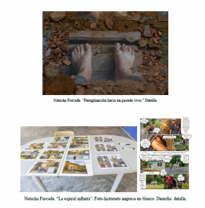 Su desempeño expandido con la fotografía le permite generar «instalaciones sensibles», refiriendo a Boltanski, cuando recurre a la documentación de Peregrinación hacia un pasado vivo, acción performática que documenta en un video, consistente en una caminata que realizó descalza para impregnarse de su espiritualidad y de la gente de Minas. Se trata de una instalación fotográfica consistente en una serie fotográfica que tiene como protagonista sus pies con rastros de tierra, tomados en diferentes puntos del recorrido, que emplaza en el suelo, semi cubiertas con tierra y piedras del lugar que pisaron sus plantas. Y finaliza con la foto-historieta La espiral infinita, donde refleja la historia real de un adolescente minero a través de las fotos que le tomara interactuando con su espacio de vida, historia en imágenes que fue reescrita por un adolescente habanero, interacción narrativa que sugiere la espiral interpretativa que propone. Para su afirmación ofrece algunas cartulinas con la foto historieta en blanco para que el púbico cree sus propias versiones, hasta el infinito.