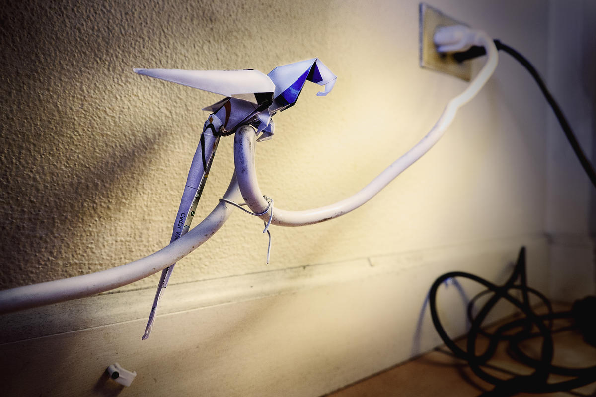 Dándole forma a lo eterno desde una habitación de hotel. 2018. Origamis realizados con mapas de Antigua y Barbuda. Dimensiones variables.