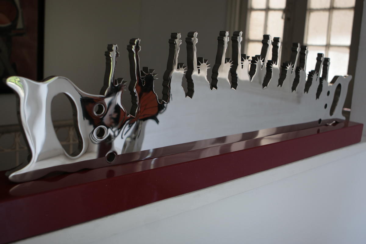 Alexandre Arrechea. Conversación en Viena. 2012. Acero inoxidable. 61 x 177 x 35 cm.
